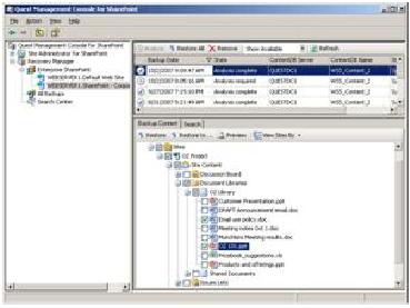Recovery manager for SharePoint has the ability to granularly restore documents into SharePoint sites without having to restore a complete content database.