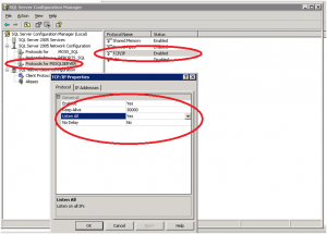 - Enable new SQL Server for TCP/IP and listen to all ports