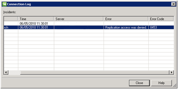 Confirm that the service account used to run Forefront Identity Manager Synchronization Service (FIMSynchronizationService) has the AD Security right of “Replicating Directory Changes” at the domain level