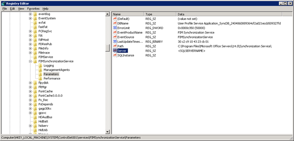 [HKEY_LOCAL_MACHINESYSTEMControlSet001servicesFIMSynchronizationServiceParameters]