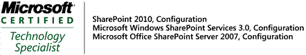 SharePoint 2010 Microsoft Certified Technical Specialist November 5, 2010November 5, 2010 Luke SmithMicrosoftMicrosoft, Sharepoint Adding to My SharePoint 2007 MCTS Certification I now have the MCTS SharePoint 2010 Configuration, as today I successfully passed exam 70-667.