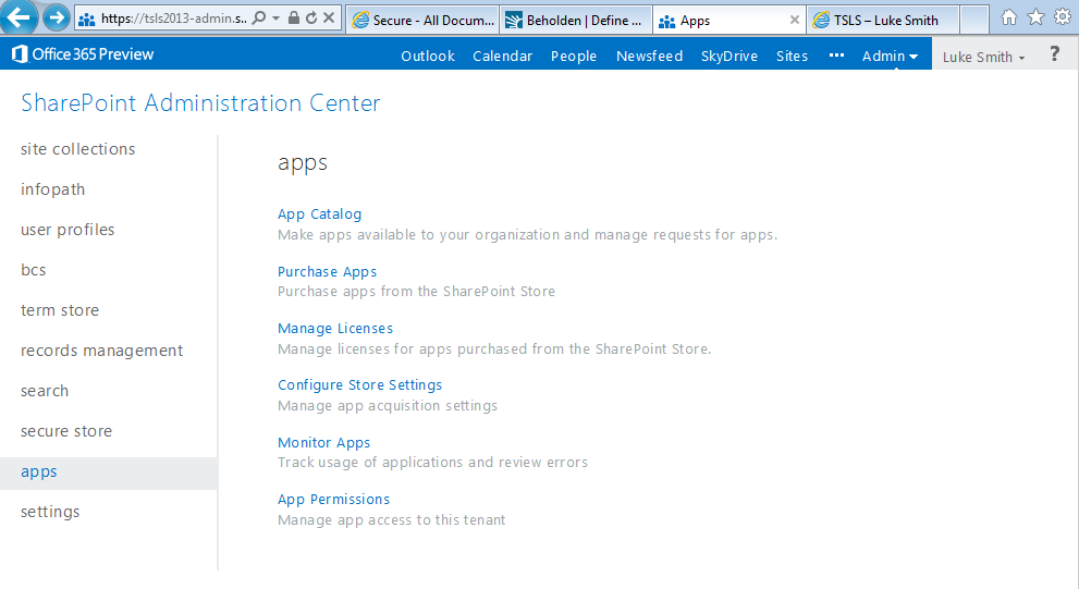 Launch https://portal.microsoftonline.com, Select Admin, Select SharePoint Select App